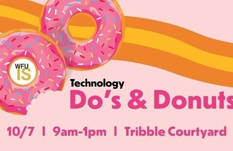 Join Information Systems (IS) to learn all things tech and enjoy donuts and coffee at the 4th annual Technology Do’s and Donuts event. The event will highlight IS’s many technology resources, including super wifi and friendly tech support. IS staff will be on hand with answers, fun merch, and prize giveaways. Drop in anytime on Tuesday, Oct. 7, between 9 a.m. and 1 p.m. by the ZSR stairs in the Tribble Courtyard.