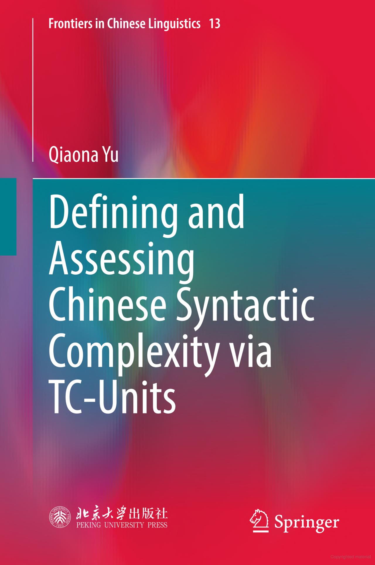 Dr. Qiaona Yu, Associate Professor of East Asian Languages and Cultures, Defining and Assessing Chinese Syntactic Complexity via TC-Units. Peking University Press & Springer, 2025.
