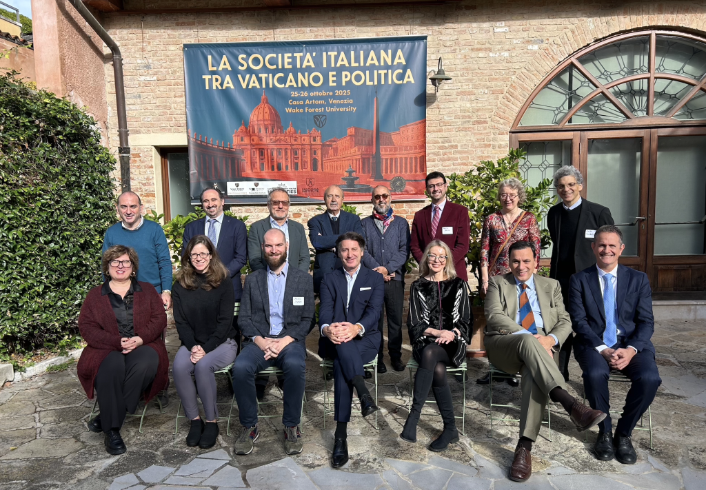 Dr. Rémi Lanzoni, Professor of Italian and Director of Italian Studies, organized the international conference “Italian Society in the Light of the Vatican and Politics” at Casa Artom in Venice, Italy. The event explored the complex relationship between Catholicism, religion, and modern Italian society. Co-sponsors of the conference included: The Provost’s Office, the Office of the Dean of the College, the Program for Leadership and Character, the Jorizzo Family Funds, the National Endowment for the Humanities, and the WFU Humanities Institute.