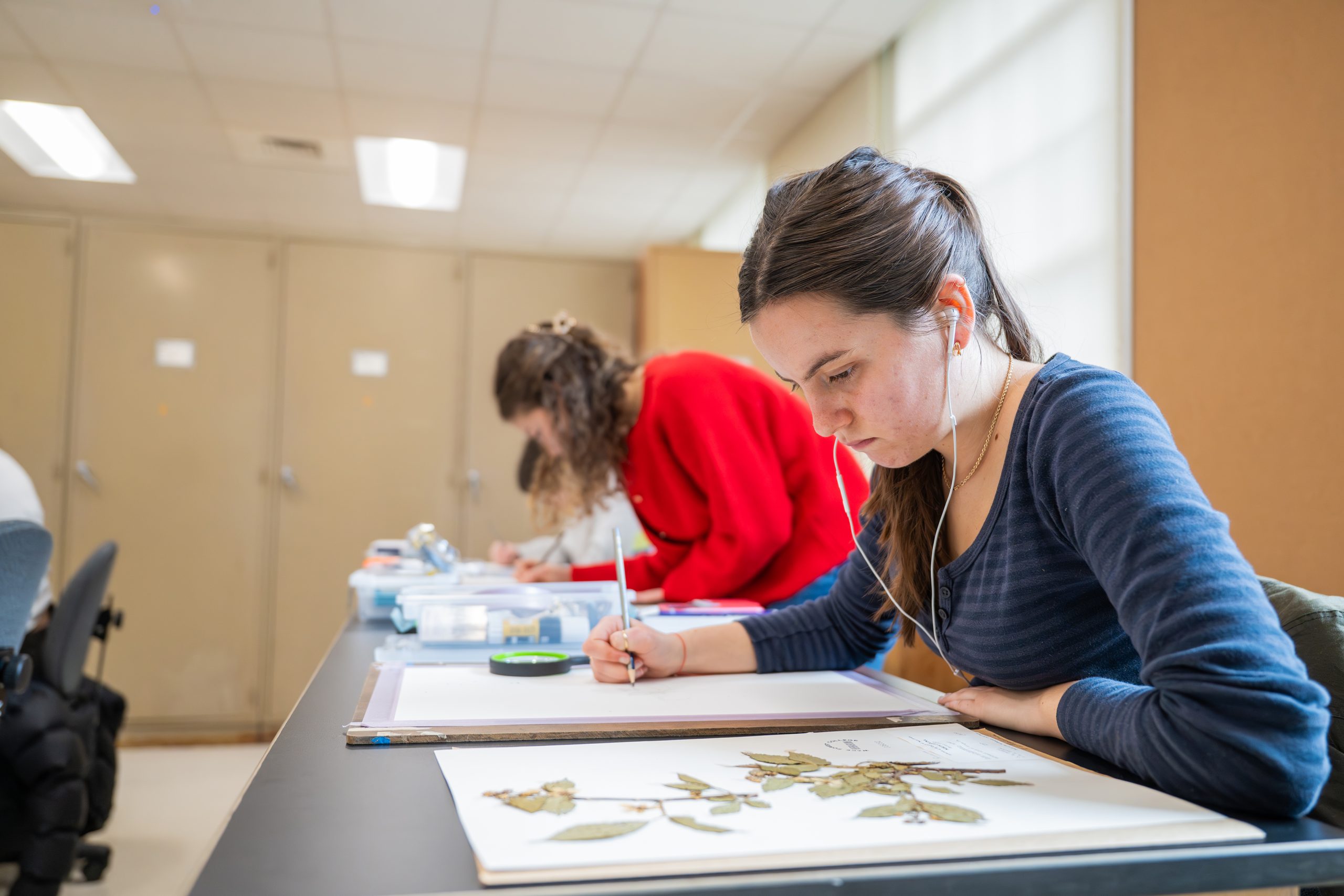 Information Systems is pleased to host Botanical Bridges: Observation and Invention, an art exhibit featuring student works from Professor Lydia Smith’s Spring 2026 Life Drawing (ART 218) class. Inspired by the Wake Forest University Herbarium and its intriguing collection of plant specimens, Professor Smith’s students created and personally framed each of the twenty-four watercolor and colored pencil drawings in the exhibition. Through a Wake The Arts grant-funded initiative, the works are on view now at The Bridge (atrium level of ZSR) through Spring 2027. An opening reception will be held on Friday, April 17, from 2 to 4 p.m. at The Bridge.
