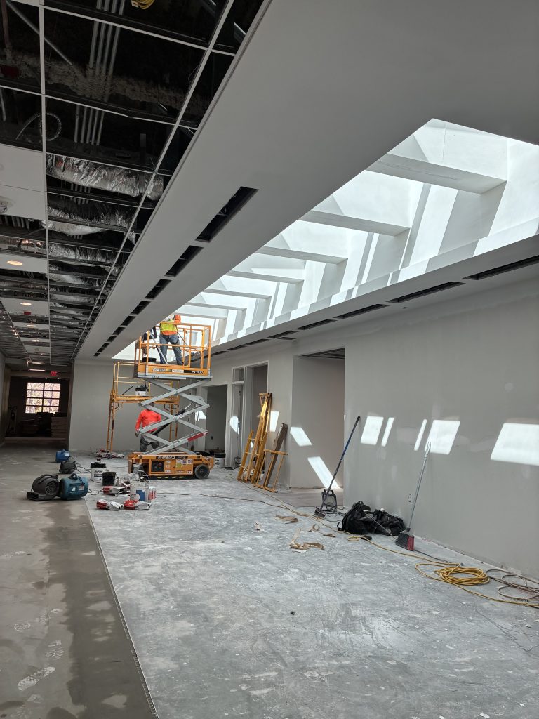Alumni Hall renovation continues and is on track for summer completion to support Fall 2026 classes and students, faculty, and staff in Computer Science, Education, Entrepreneurship, and Philosophy. Most recently, all three of the building’s skylights were delivered and installed.