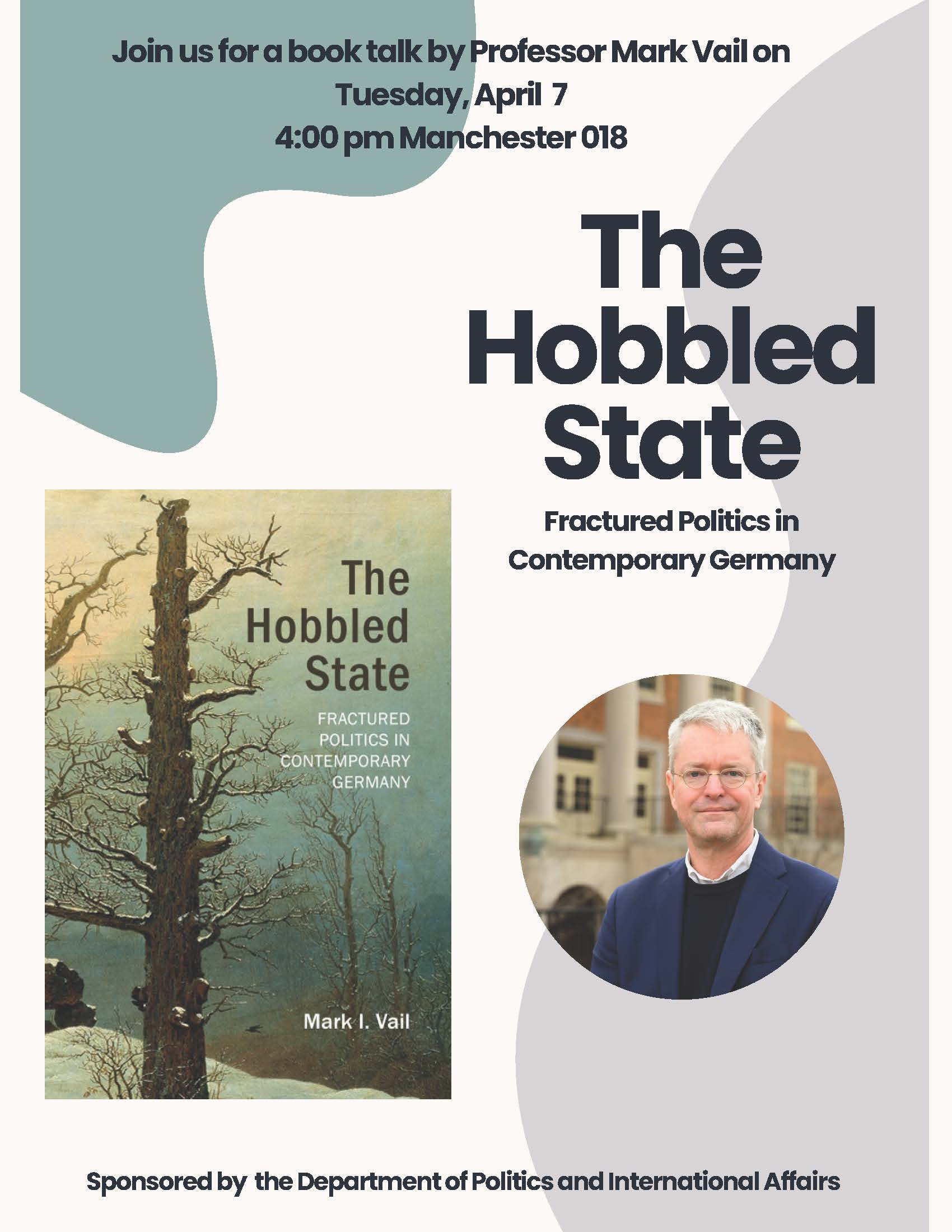 Join the Department of Politics and International Affairs for a book talk by Dr. Mark Vail, Worrell Professor of Politics, on Tuesday, April 7, at 4 p.m. in Manchester 018. Dr. Vail will discuss his new book, The Hobbled State: Fractured Politics in Contemporary Germany.